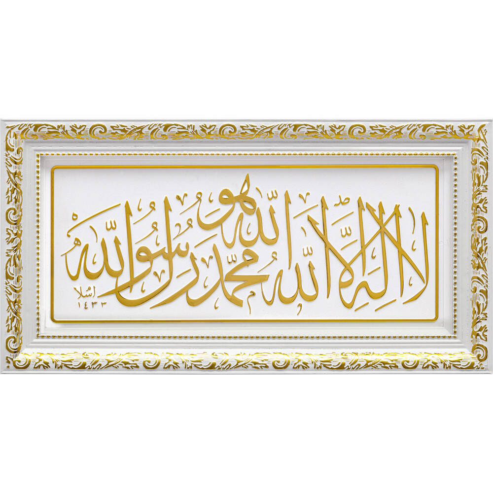20x40 cm Ayetli Kelime-i Tevhid - Beyaz Sarı